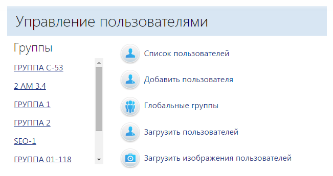 Основная задача Куратора — работа с учетными записями пользователей Системы. Для этих целей служит набор инструментов для управления пользователями, расположенный в одноименном блоке на Главной странице Системы (рис. 122).