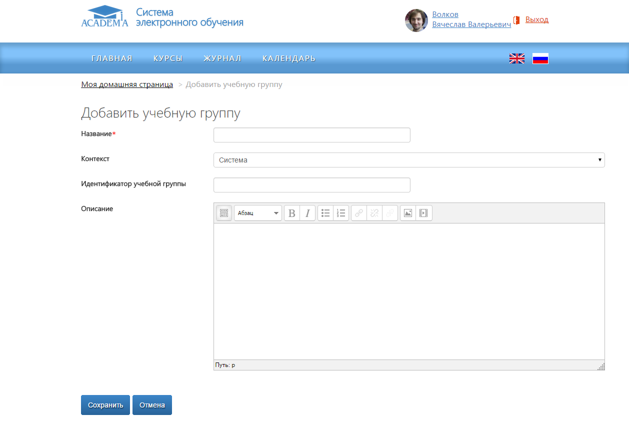 «Описание» — введите описание учебной группы (выводится в одноименном столбце таблицы списка учебных групп).